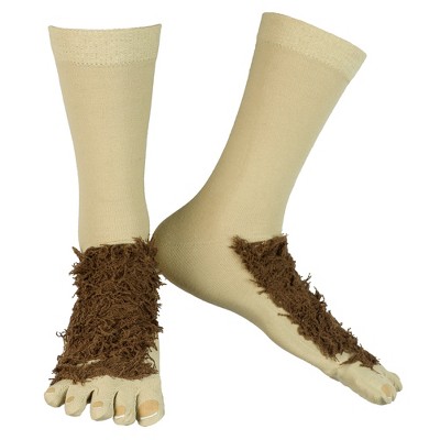 The Lord of The Rings Men's Hobbit Feet with Chenille Fur Crew Toe Socks, 1 Pair Beige