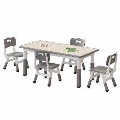 Toddler desk and 4 Chairs Set - Height Adjustable Multi-Activity Table with Graffiti Desktop, Easy Wipe Clean for Home Classroom Daycare