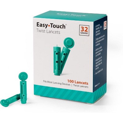 EasyTouch Twist Lancets 32G - 100 Count Box - Sterile, Individually Sealed, Comfortable Blood Glucose Testing, Compatible with Most Lancing Devices