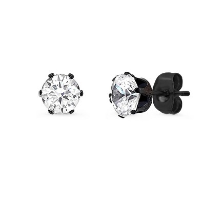 Steeltime Stainless steel round stud earrings with simulated diamonds and onyx plated back