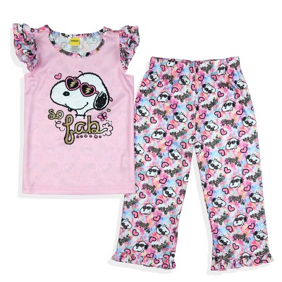 Peanuts Pajamas Toddler Girls Joe Cool So Fab Ruffle Sleeve Pant Sleep Set