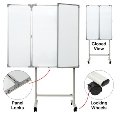 Excello Global Products 36"x42" Reversible Whiteboard on Wheels (White Frame)
