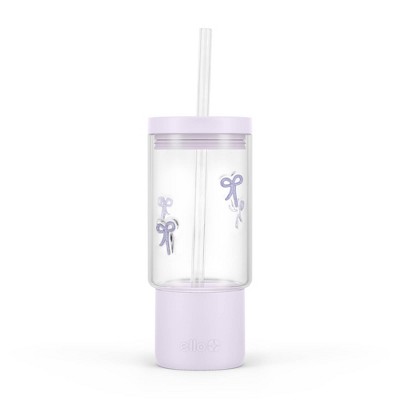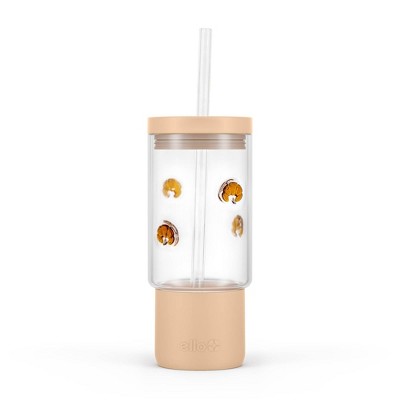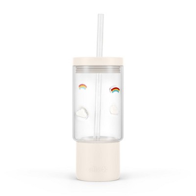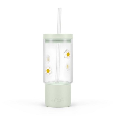 Ello Charmed 18oz Daisy Glass Straw Tumbler Green