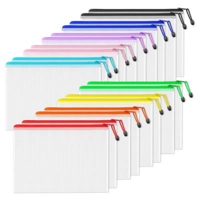 Narwey 16 Pack Large Zipper Bags 16.9x12.4 in, A3 16 Colors Mesh Zipper Document Pouch for Organizing, Storage Bags with Zipper for Board Game,