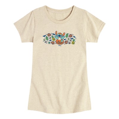 Girls' - Lilo & Stitch - Stitch Halloween Pumpkin Fitted Short Sleeve Graphic T-Shirt