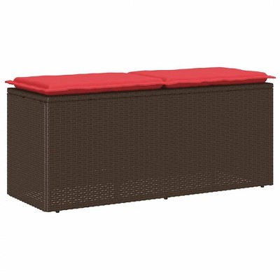 vidaXL Patio Storage Bench with Cushion Brown Poly Rattan