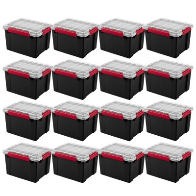 Sterilite 34Qt Gasket Box, Stackable Storage Container with Lids, Black, 16 Pack