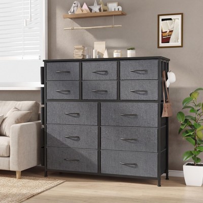 12-Drawer Fabric Dresser with Bins, Tall Wood Top Storage Tower for Bedroom Hallway Entryway