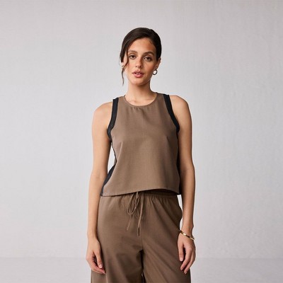 Reistor Women's Sleeveless Colorblock Top in Brown and Black