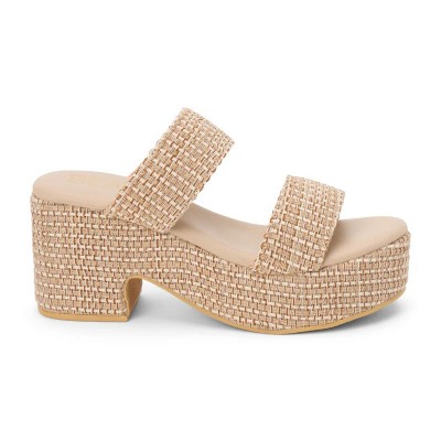 Very G Womens Isabella Tooled 3 Wedge Heel Platform Sandal, Nude