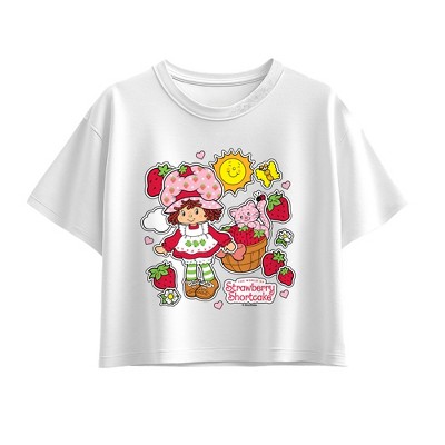 Girls' - Strawberry Shortcake - Strawberry Stickers Short Sleeve Boxy Graphic T-Shirt