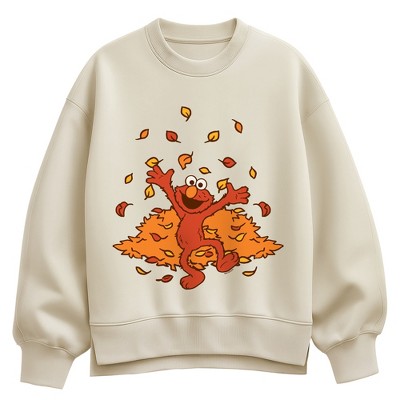 Women's - Sesame Street - Elmo Leaves Oversized Fleece Crew Sweatshirt