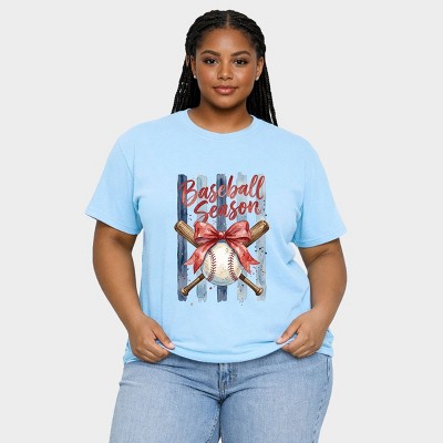Baseball Season Watercolor Stripes - Women's Plus Sized Garment Dyed Graphic T-Shirt