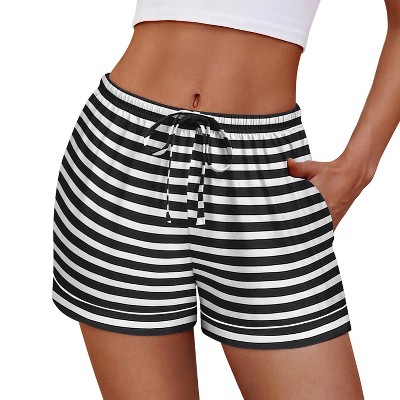 Ekouaer Womens Pajama Shorts Casual Summer Sleep Shorts Cute Printed Lounge Pj Bottoms with Drawstring & Pockets Black Strip S