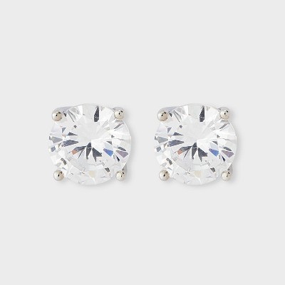 Silver Plated Cubic Zirconia Square Stud Post Earring Set 3pc - A New Day™
