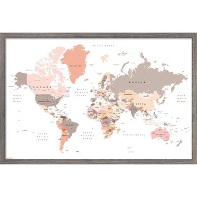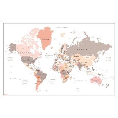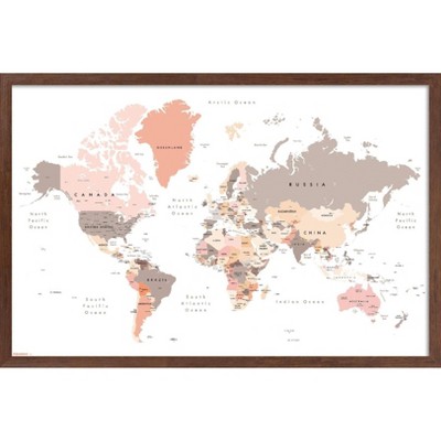 Trends International Geography - World Map Neutral Earth Tones 26 Framed Wall Poster Prints