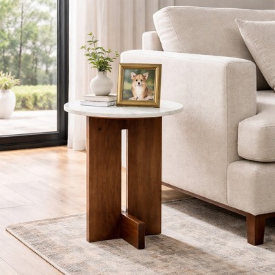 20.5" Round Galaxy Clear Tempered Glass End Table - Danya B.