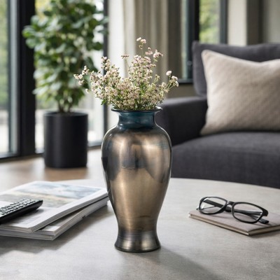 Decorative Textured Metal Vase for Livng Room Decor - Contemporary Home Accent Perfect for Bedroom, Office, and Tabletop Decor - 19", Bronze