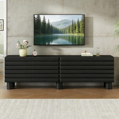 JVNOXK 70.8-inch Modern TV Stand with 4 Storage Cabinets, Solid Cylindrical Legs, Cable Management Hole, Suitable for Living Room, Black