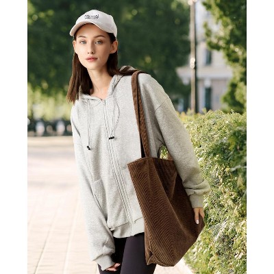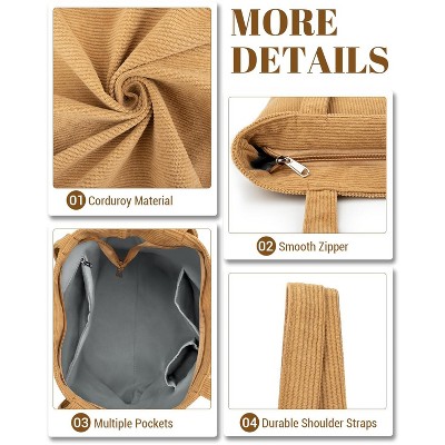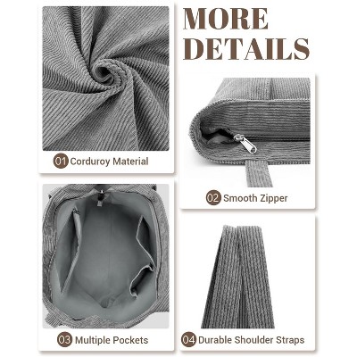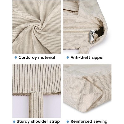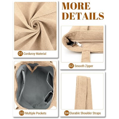 Narwey Corduroy Tote Bag for Women,Hobo HandBags with Zipper,Large Capacity Casual Shoulder Handbags with Inner Pockets