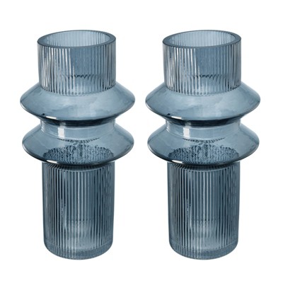NAYSAYE Set of 2 Fluted Accent Vases with Elegant Ribbed Design for Modern Home and Tabletop Stylish Decor, Multicolor, 5.9"*5.9"*11.8"