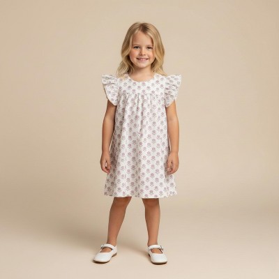 Organic Ruffle Tiered Dress - Blush Floral