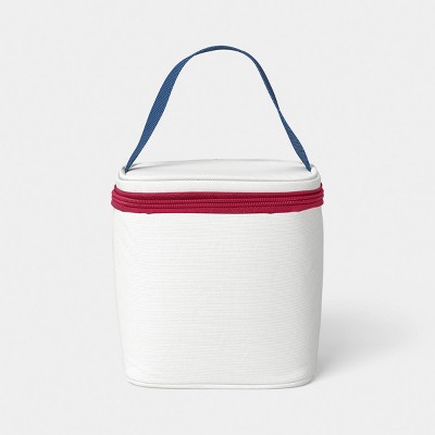 4 Cans/3.1qt Soft Sided Personal Cooler Red /Cream/Blue - Sun Squad™