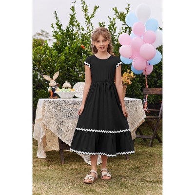 Arshiner Girls Summer Maxi Dresses Short Sleeve Casual Flowy Tiered Dress with Pockets for 4-14 Years