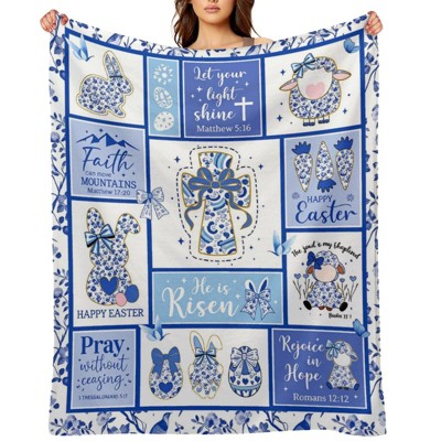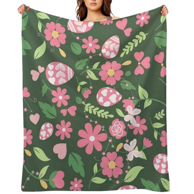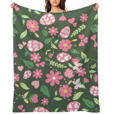 Lomsoe 1pc Easter Patterned Blanket Soft Floral Bunny Plush Blanket | Cozy Pastel Design with Delicate Flowers, Perfect for Couch, Bed.