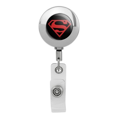 Superman Red On Black Shield Metal Chrome Badge ID Card Holder Clip