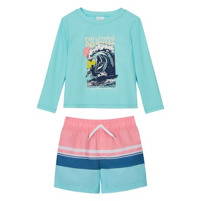 OSHKOSH B'GOSH Toddler/Little Boys' 2-Piece Long Sleeve Rashguard & Swim Trunks Set