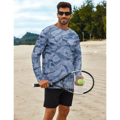 Pinspark Mens UV Protection Shirts Long Sleeve Fishing Shirts Camo Rash Guard Swim Shirt Quick Dry Athletic Workout Tshirts