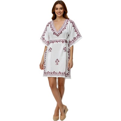 LA LEELA Womens Beach Loose Dress Cover Up Bikini Vacation Swimwear Mini Bathing Suit Beachwear M-L White, Solid