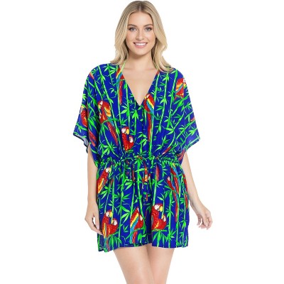 LA LEELA Womens Summer Vacation Mini Swimwear Bathing Suit Dress Holiday Beach Dress Coverups Beach Wear Swimsuit Cover-up 3X-4X Blue, Bird