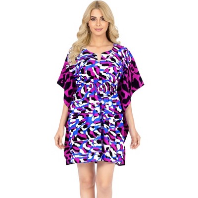 LA LEELA Womens Short Vacation Beachwear Mini Swim Suit Summer Beach Loose Dress Bathing Suit Cover Ups S-M Purple, Abstract
