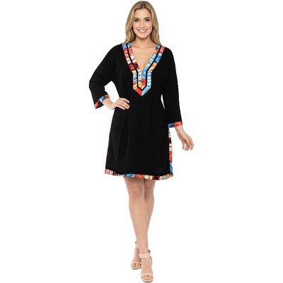 LA LEELA Womens Summer Bathing Suit Cover Ups Mini Holiday Beachwear Mini Swim Suit Loose Beach Dress Boho Dress XL-XXL Black, Solid