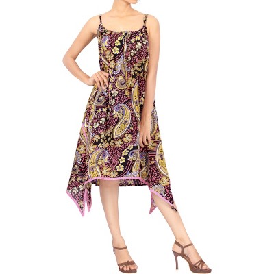 LA LEELA Womens Beachwear Summer Swim Beach Cover Ups for Swimwear Women Swimsuit Coverups for Women Strappy A Line Dress 1X Yellow Paisley