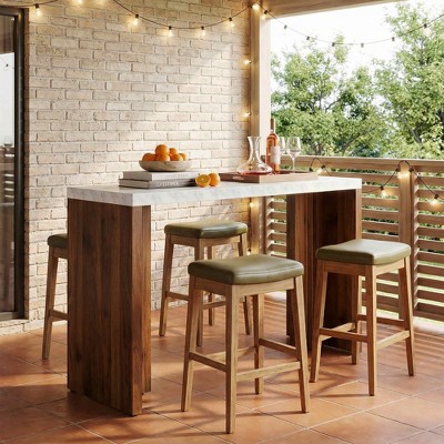 MAYEERTY 55.12" Minimalist Bar Table, Faux Marble Top & Dark Walnut Legs, 36.02" Height Heavy-Duty Home Bar Unit