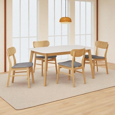 5-Piece Mid-Century Modern Dining Table Set with Solid Wood Frame Table and 4 Upholstered Rubberwood Chairs for Dining Room