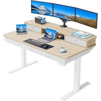 55 X 30 In Electric Standing Desk with Wood Drawers, Ergonomic Adjustable Stand up Desk C-Clamp Monitor Mount Compatible