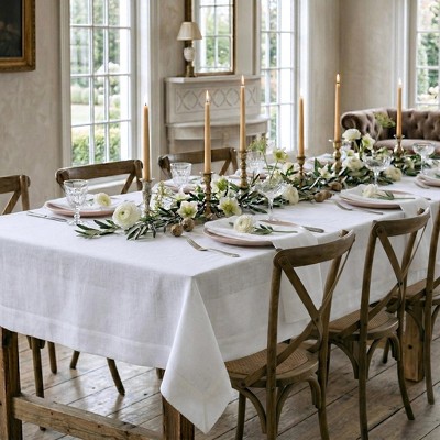 Solino Home Linen Tablecloth for Dining Table, Holiday and Everyday Table Decor - Classic Hemstitch