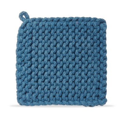 tag Blue Crocheted Cotton Trivet Potholder – 8"x8", Heat-Resistant with Hanging Loop, Machine Washable, Protect Hands and Surfaces