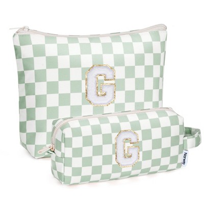 Narwey 2 Set Personalized Initial Checkered Makeup Bag, Cute Travel Cosmetic Bag