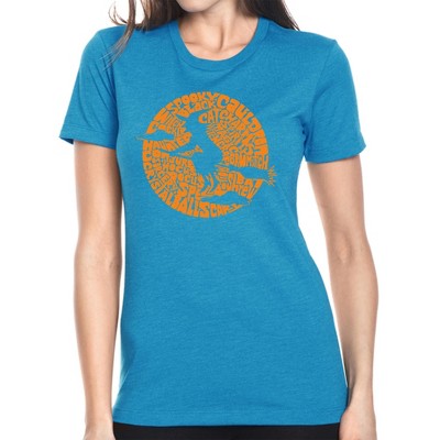 LA Pop Art Women's Premium Blend Word Art T-shirt - Spooky Witch Turquoise 2X Large