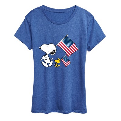 Women's Peanuts Snoopy & Woodstock USA Flags Short Sleeve Graphic T-Shirt - Heather Royal Blue - 3X