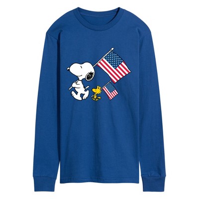 Men's Peanuts Snoopy & Woodstock USA Flags Long Sleeve Graphic T-Shirt - Royal Blue - Medium
