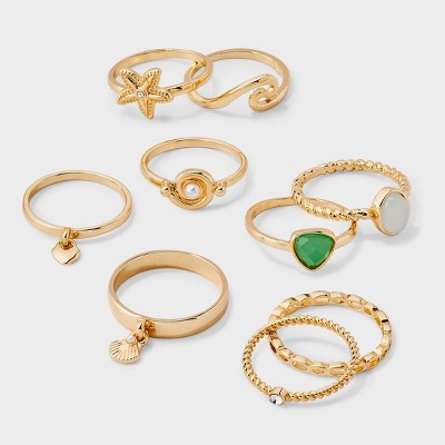 Rhinestone Band Ring Set 8pc - Wild Fable™ Gold: Stacking, Statement Jewelry, Medium/Large, Zinc Material