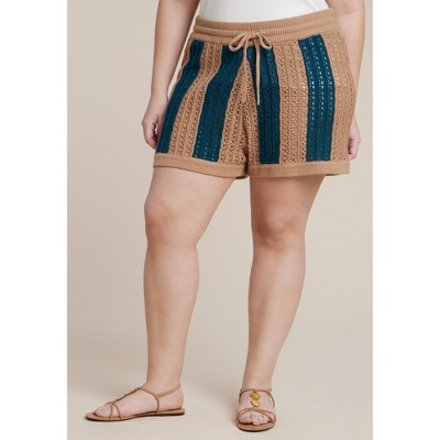 Women's Plus Size Postcard Soiree Print Short - sand | CITY CHIC