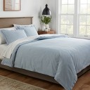 BALHAM TRADE-Twin 100% Washed Cotton Striped Duvet Cover Set, Wide Stripes Bedding Set