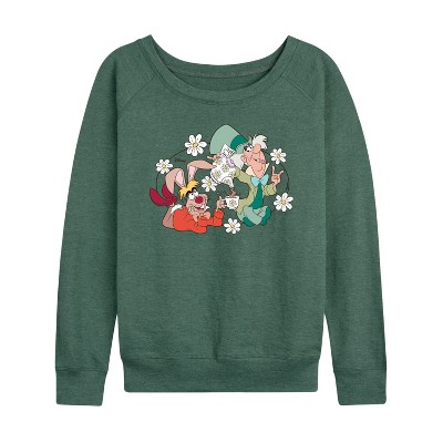 Women's - Disney - Alice in Wonderland Lightweight French Terry Wide Neck Long Sleeve Graphic Shirt